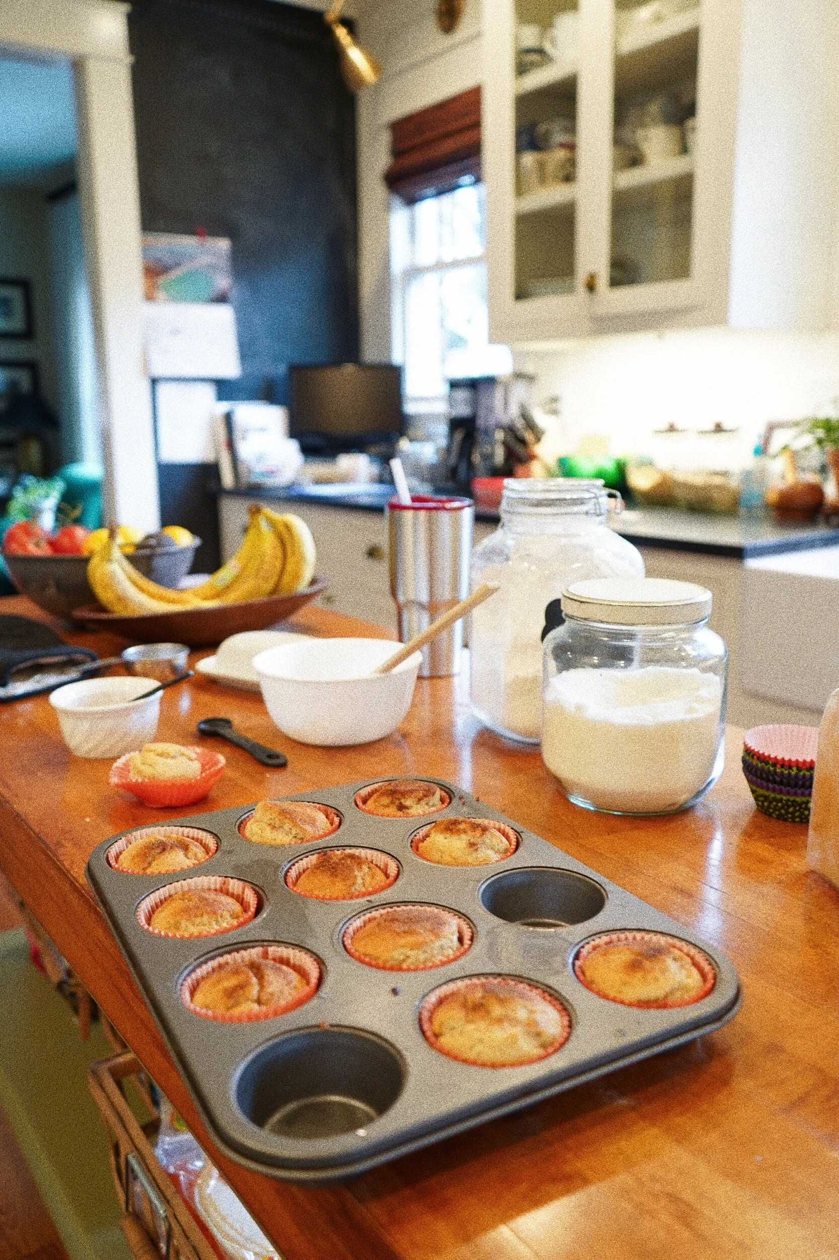 For the first two weeks of quarantining, the thought of baking sounded so fun to us. It was still slightly cold outside and the idea of baking warm and delicious goods touched us on a deeply cozy level. Remember the oatmeal cookies we made? After those were at hit at home, we set our eyes on making something with the some of the ingredients we had a lot of, and for some reason we both separately bought different containers of cinnamon, so we settled on cinnamon muffins because muffins = always a good idea.