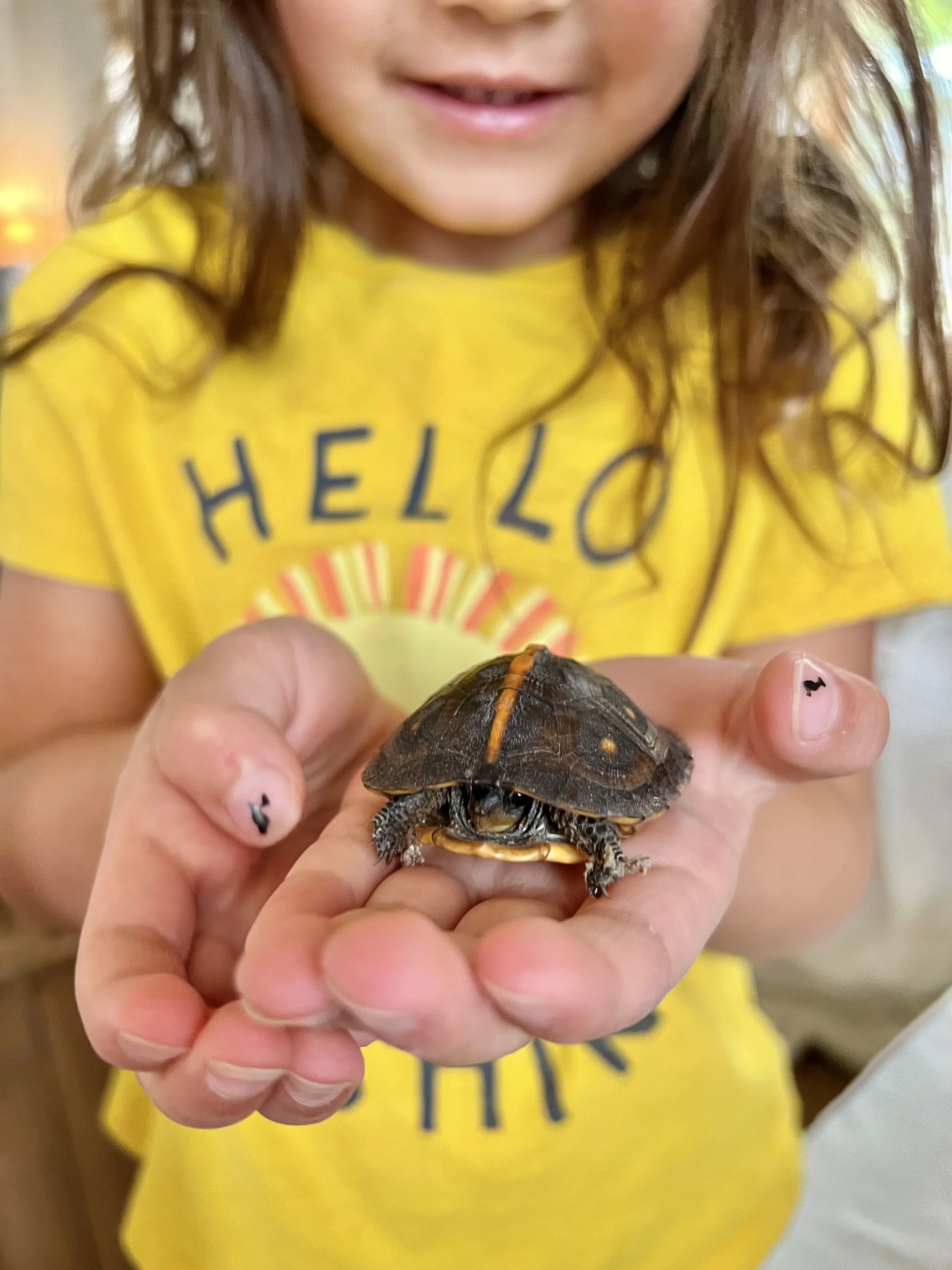PJ found this little turtle in our apartment behind the beach shack this morning and the kids are obsessed. It’s hard to tell just how small they are in the photos, but this little baby is teeny. It’s the highlight of their morning and they’re all crowded around the coffee table making little houses for it before releasing it back into the wild.