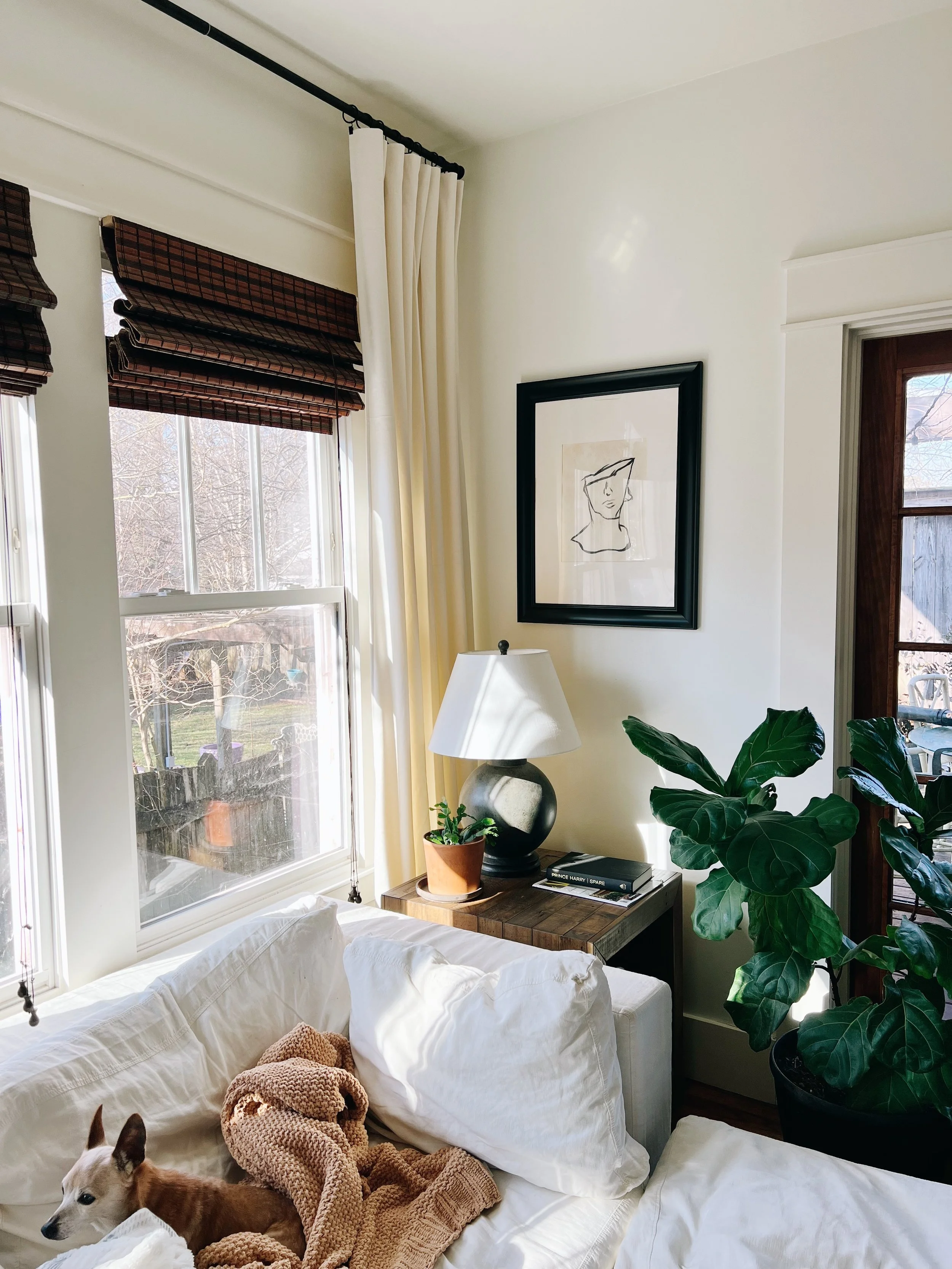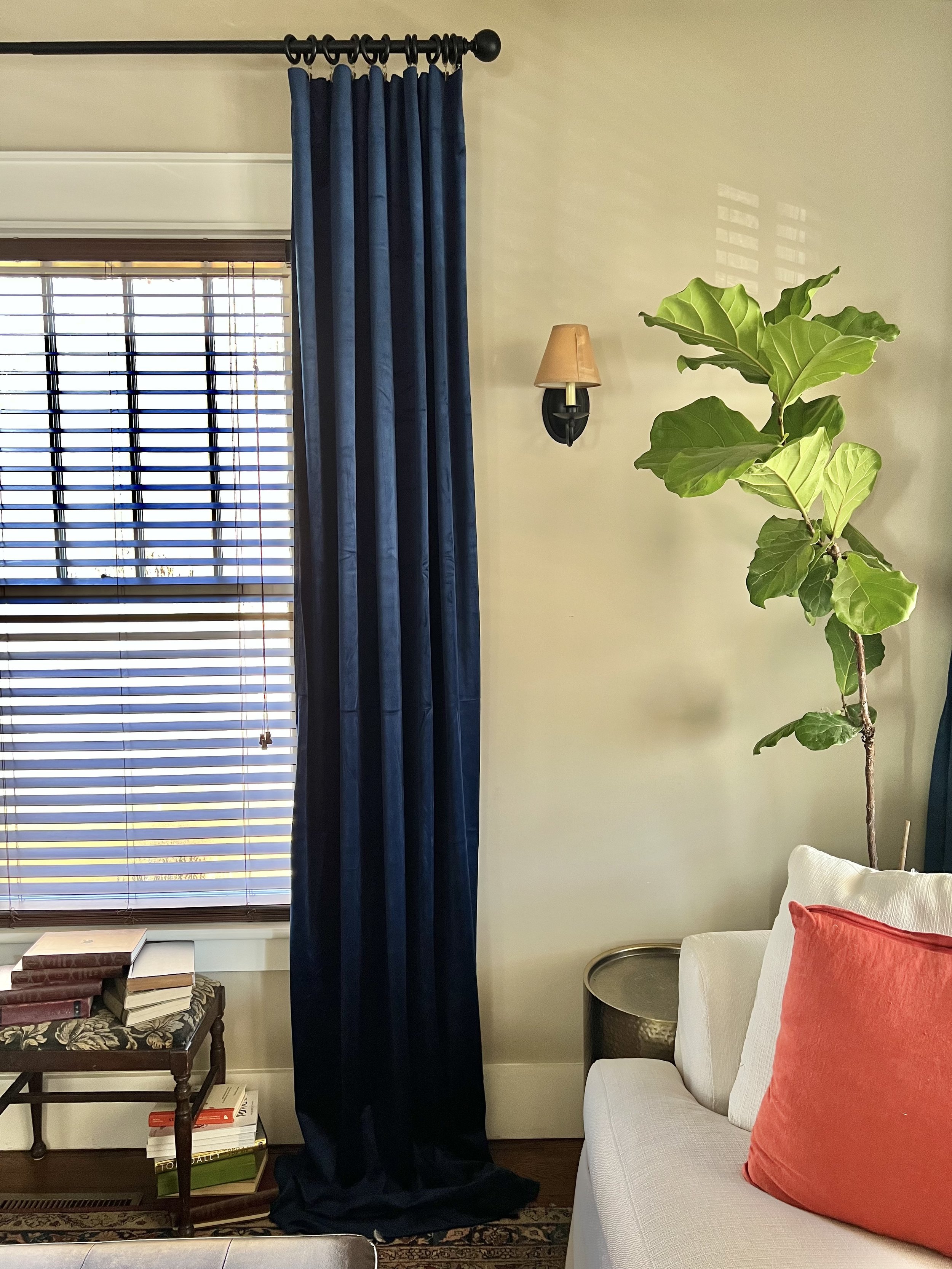 Hang curtains in the living room (shown above, more on those soon!)