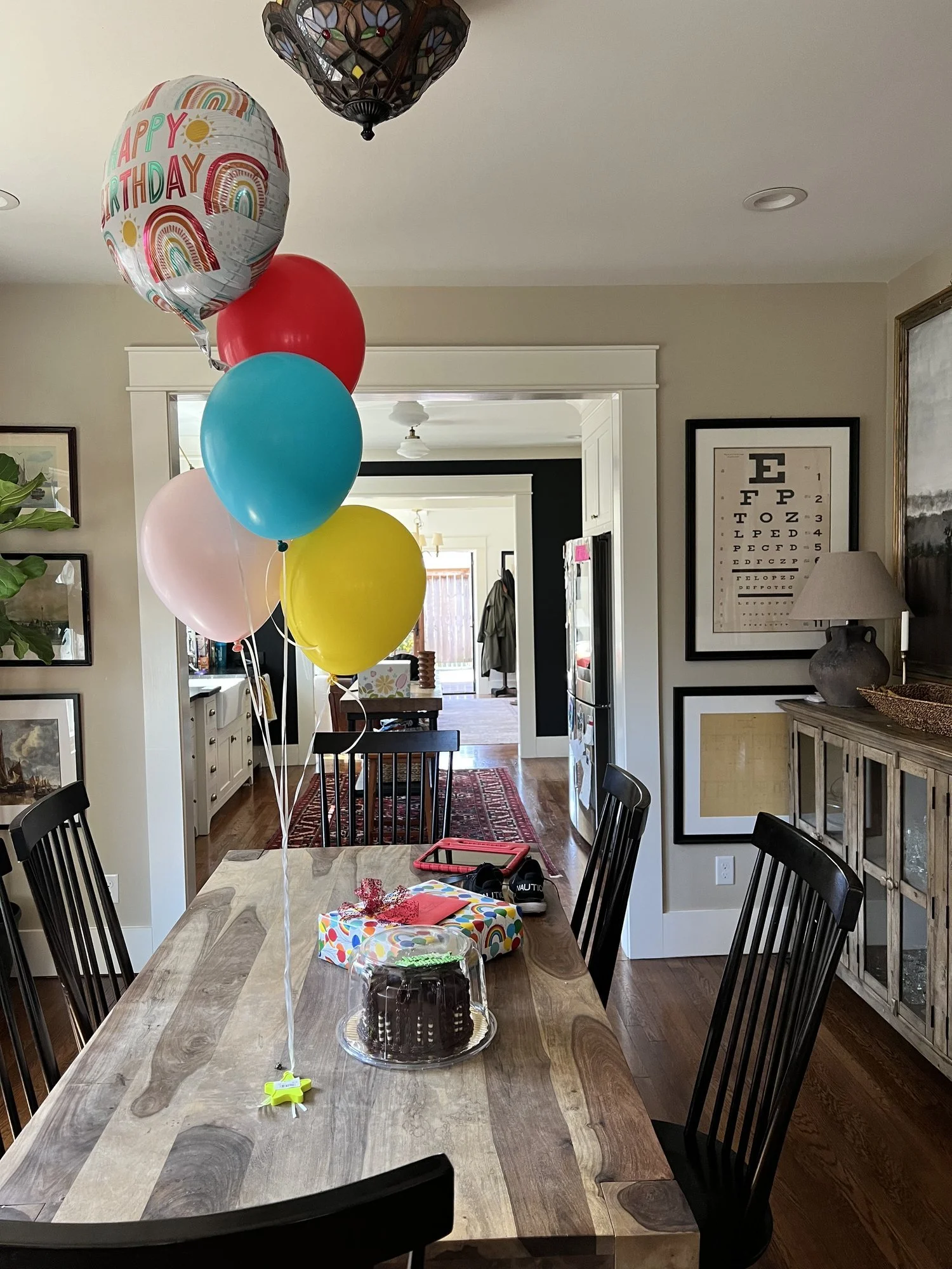 When we got home, I walked into the house to see balloons and a cake and a gift sitting on the dining room table. Who could this be from? Everyone I knew and loved was with me on the trip down to South Georgia, and who knows how to get into our house?! Then I remembered.