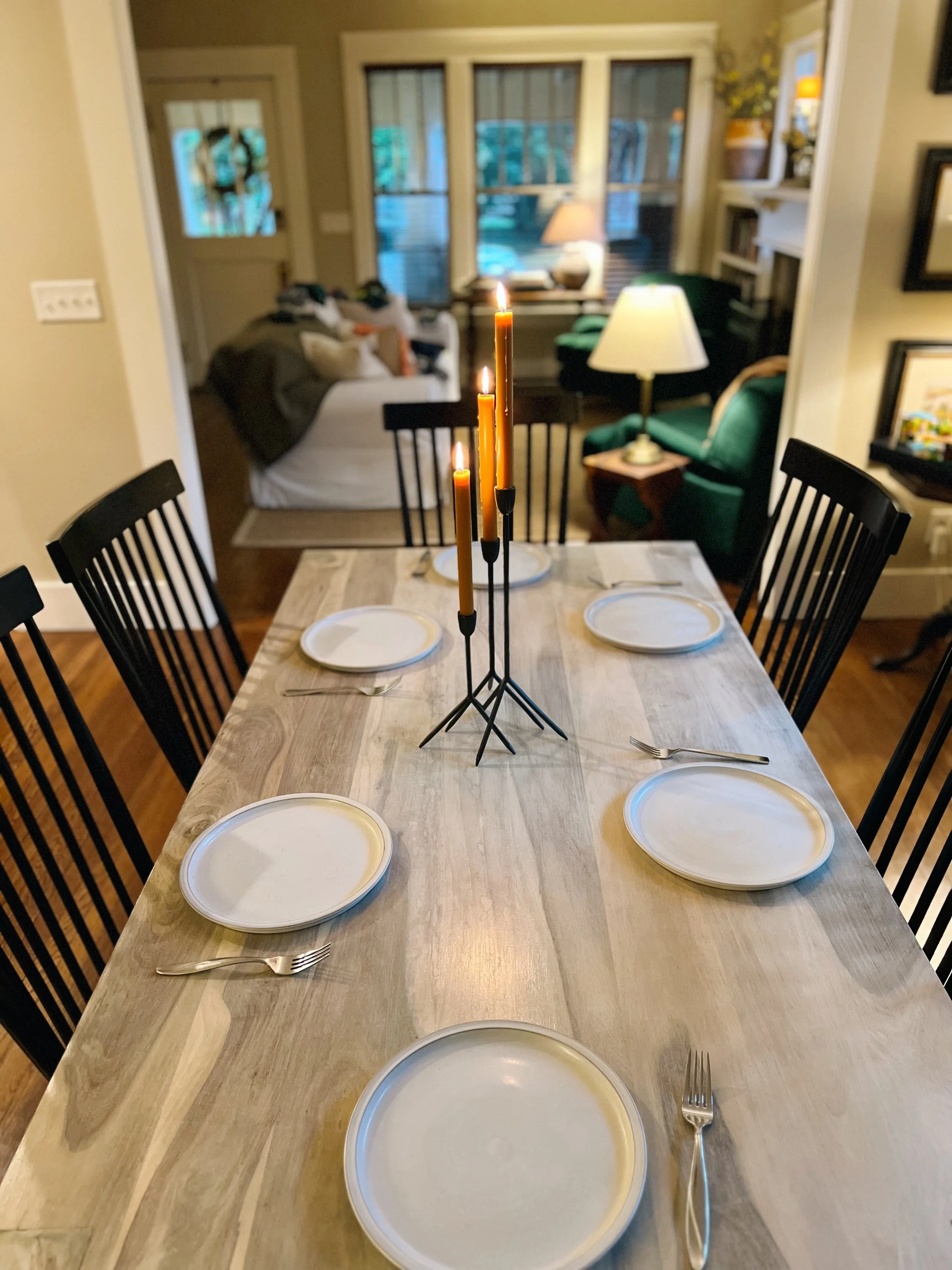 But then time passed, and more time passed, and dinner was ready but no one was here to eat it. Another text from Sydney comes in. It’s a picture of the flooded parking lot taken from inside her apartment saying, “We might be late.” The rain was pouring down so hard you could barely see anything. It was raining cats and dogs here, too (we live about 45 minutes away from her), which created a cozy atmosphere inside with lamps on and candles lit, but a driving hazard outside.