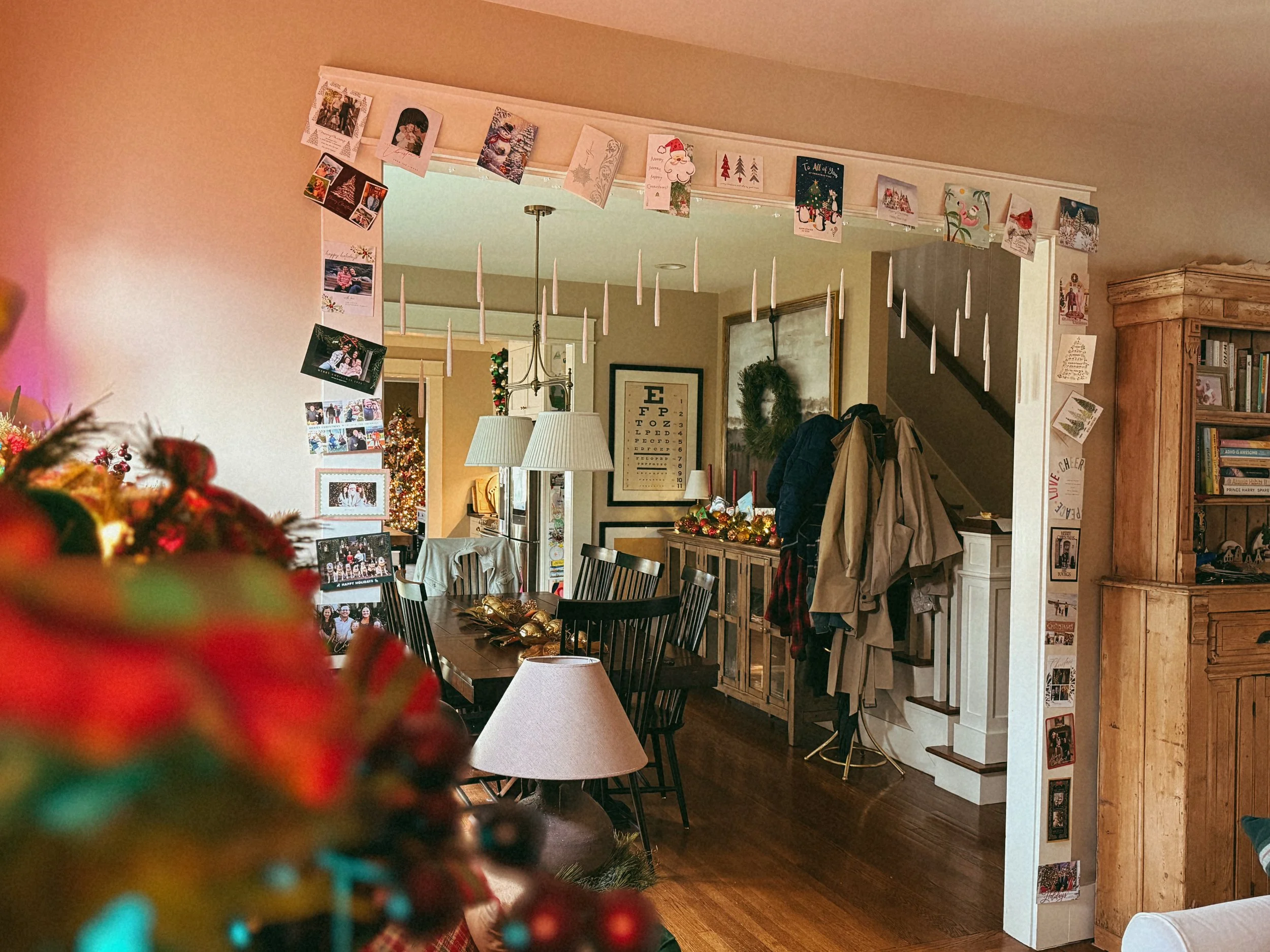 I didn’t realize until much later how deeply that stuck with me. Now, when we tape the first card up each season, it feels less like decorating and more like opening a door. The season has officially become more festive. People we love are checking in. Life is happening elsewhere, and it’s all finding its way into our dining room.