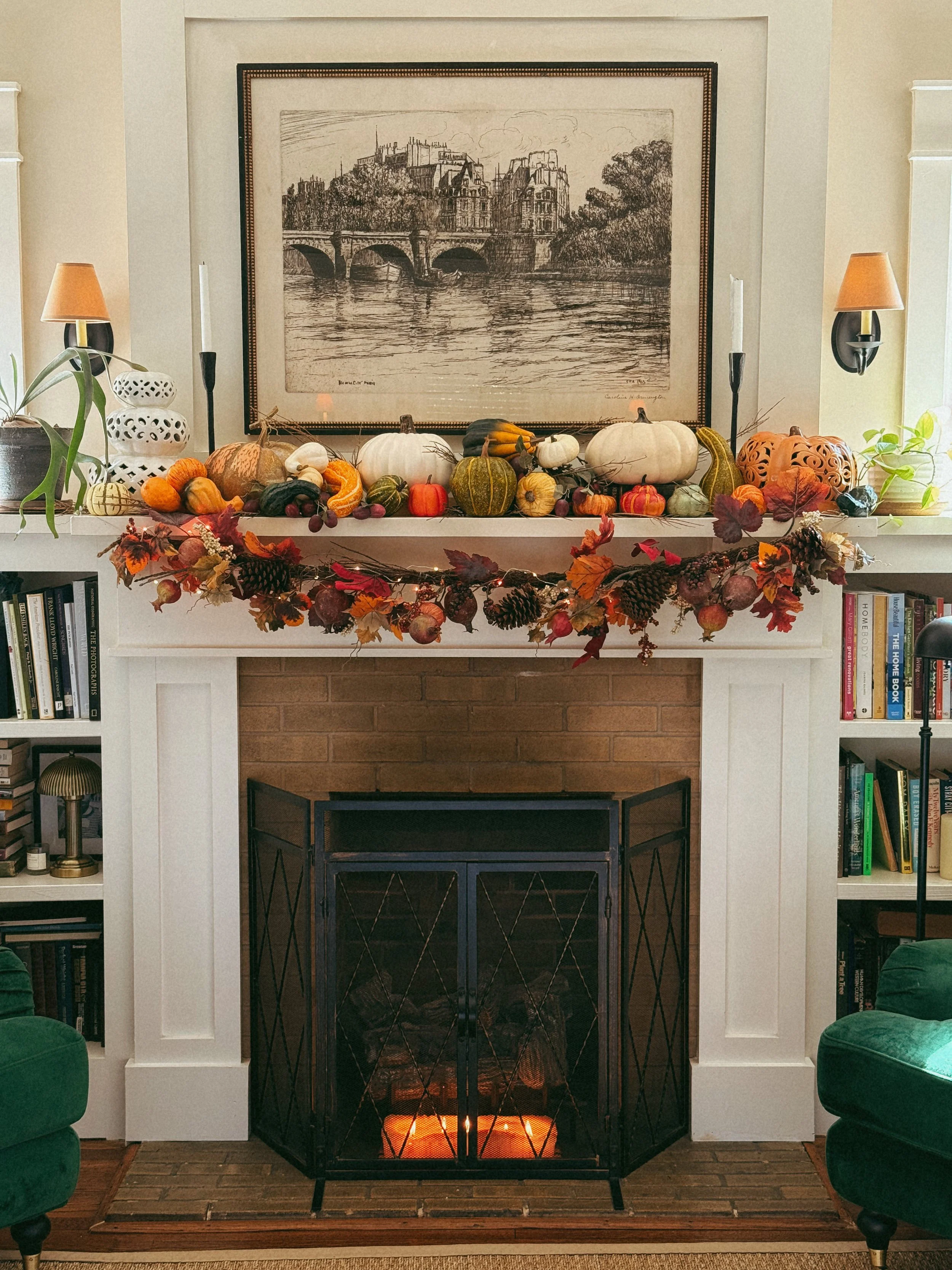 We’ve found that investing in good fall décor and reusing it year after year not only saves money but also makes pulling it all out each season feel a little nostalgic. Here are some of our favorite pieces to create a layered, inviting mantel that feels like fall the moment you walk in: