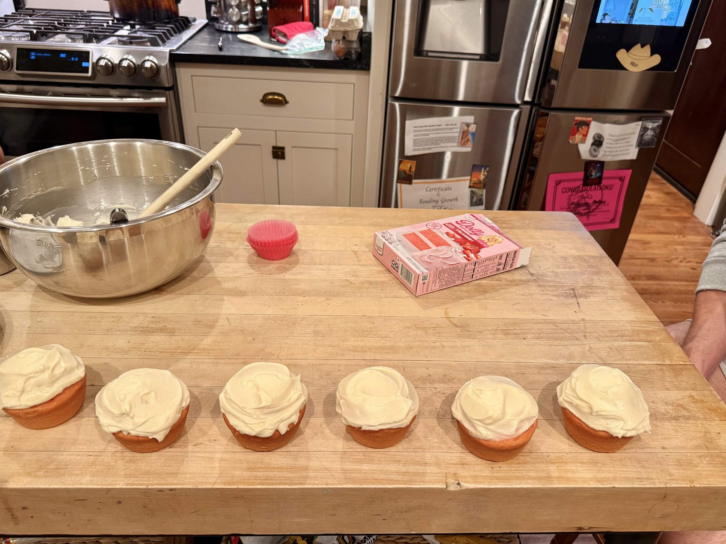 Strawberry cupcakes, homemade frosting, and a pink, sugar-dusted evening in our kitchen. I’ll take that kind of love story any day.
