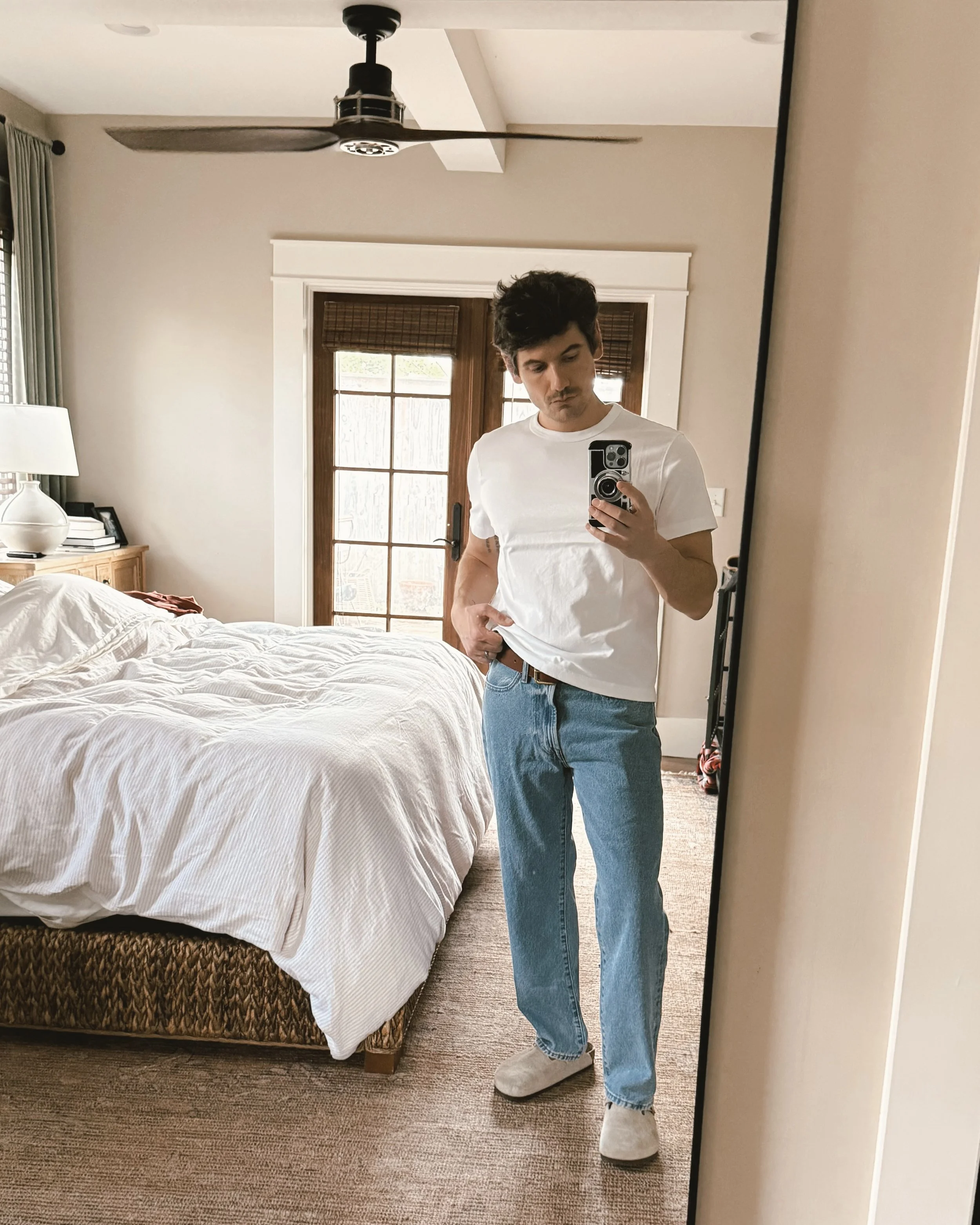 A good white tee is the backbone of a wardrobe and is so classic. This one has that perfect relaxed fit that feels borrowed from a 1997 catalog in the best way. It skims just over my pants, which is how white tees are supposed to fit, and it works with everything.